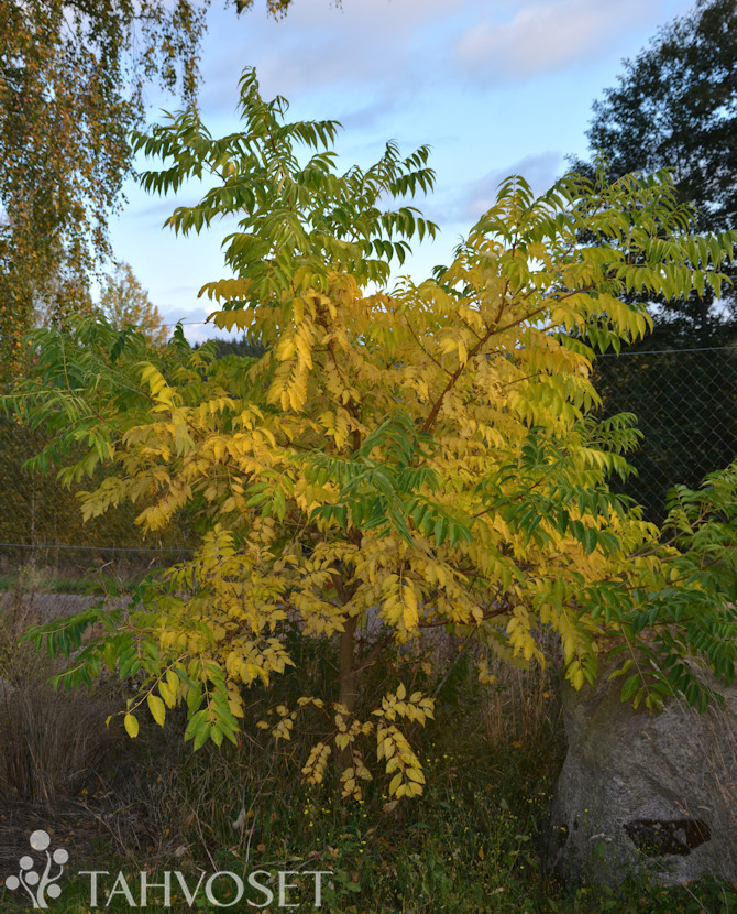 Leveälatvuksinen, kasvutavaltaan kaunis. Kaarna on pehmeän korkkimainen. Koristeellinen, pihkan tuoksuinen lehdistö. Syysväri keltainen. Koristeelliset mustat marjat. Nuoret versot arat keväthallalle. Tuore ja hyvä kasvualusta. Lehdet syksyllä keltaiset.