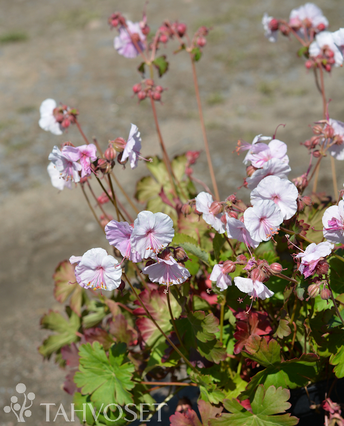 Kukat lähes valkoiset, hennon vaaleanpun. Kukkii heinä-elokuussa. Hyvä nopeasti leviävä peittokasvi, muodostaa tiheän kasvuston. Dalmatian- ja tuoksukurjenpolven risteymä.