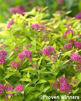 Tiiviskasvuinen, matala ja pyöreämuotoinen pensas. Lehdistö puhkeaa kellanvihreänä, mutta muuttuu nopeasti kirkkaan keltaiseksi. Runsas pinkki kukinta heinäkuussa. Syysväri punertava. Helppohoitoinen pensas. Ryhmiin, kukkivaksi aidanteeksi. Proven Winners® kasvikokoelma.