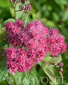 Tiheä- ja pystykasvuinen, leveähkö pensas. Lehdistö tumma, punasävyinen. Runsas himmeän karmiininpunainen kukinta saman vuoden versoilla heinä-elokuussa. Syysväri tummanpunaisen eri sävyjä. Monikäyttöinen, helppohoitoinen pensas. Ryhmiin, massapensaaksi, mataliin aidanteisiin.