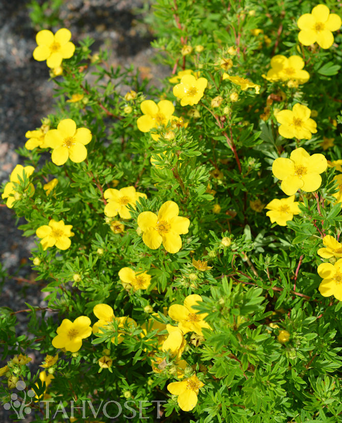 Pystyoksainen, leveäkasvuinen ja monikäyttöinen pensas. Kirkkaanvihreät lehdet puhkeavat myöhään. Kukat suuria, kirkkaankeltaisia. Terälehdet putoavat heti kukinnan jälkeen, joten pensas pysyy siistinä. Sopii käytettäväksi mm. laajoissa pensasryhmissä, aidanteena ja luiskissa aurinkoisella kasvupaikalla.