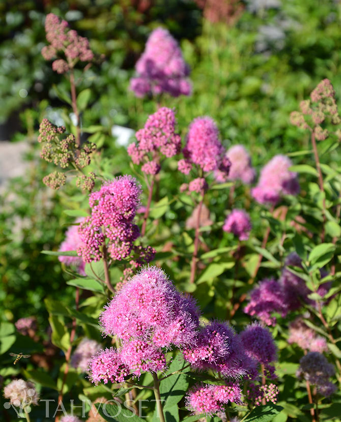 Keskikorkea ja pysty, alhaalta asti tuuhea pensas. Lehdet pitkänpyöreitä, alta harmahtavia. Kukkii pitkään leveän kartiomaisin ruusunpunaisin kukin. Sopii ryhmiin ja aidanteeksi.