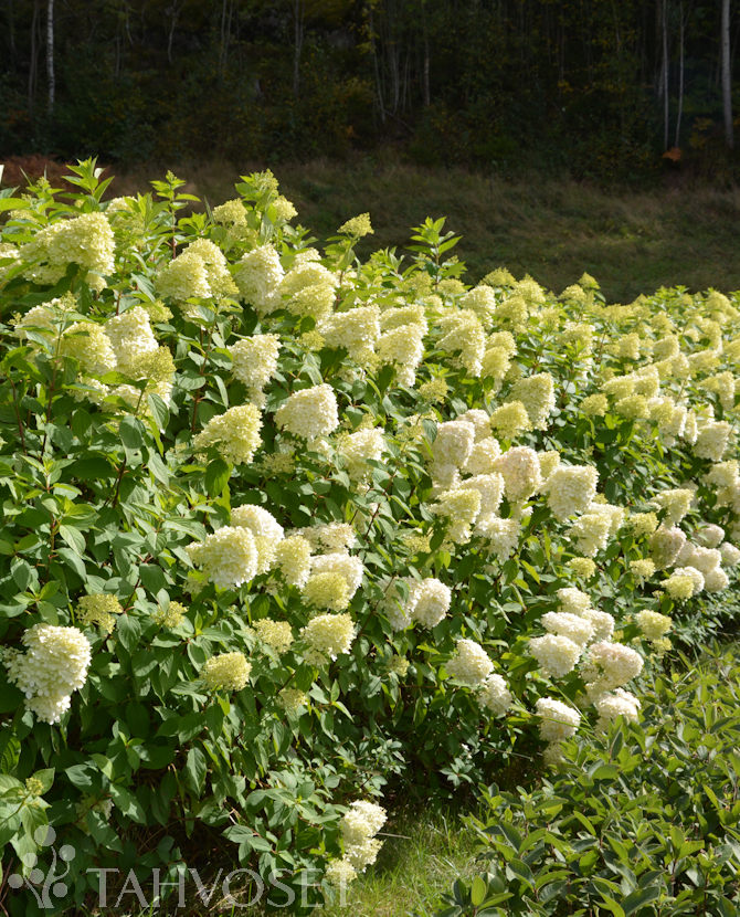 Rungollinen syyshortensia. Suuret, tiiviit, kartiomaiset kukinnot heinäkuusta syksyyn. Kermanvalkoisena puhkeavat kukat muuttuvat pian limenvihreiksi. Kukinnan edetessä väri muuttuu hieman punertavaksi. Latvusta suositellaan leikattavan säännöllisesti keväällä ennen silmujen puhkeamista.