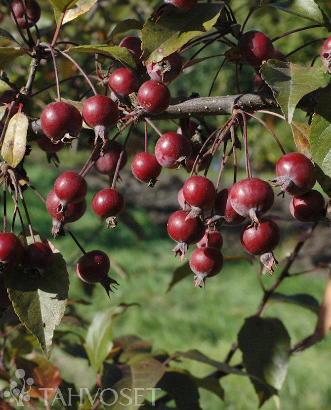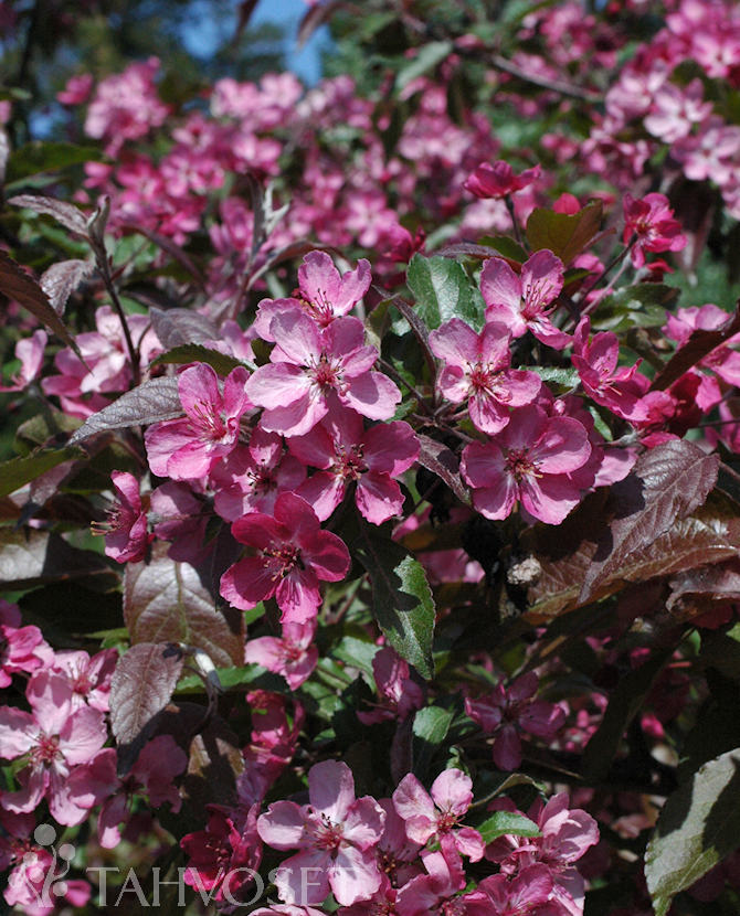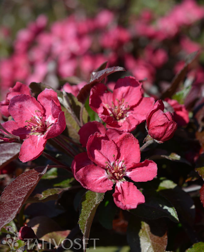 Kukat puolikerrotut, tummanpunaiset, ø n. 3 cm, sijaitsevat erikoisesti pitkin versoja. Erityisen kauniskukintainen. Lehdistö punertavan vihreä. Omenat ovat pieniä ø 1-1,5 cm, tumman viininpunaisia, punamaltoisia. Puu on matalakasvuinen. Vartettu, perusrunko M. 'Bittenfelder'.