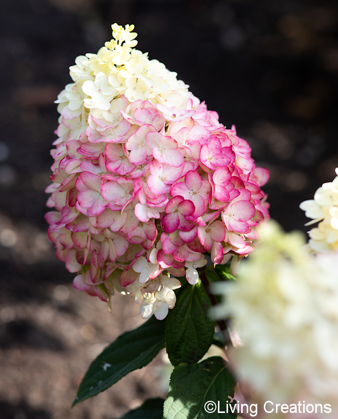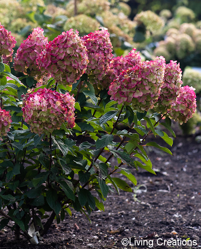 Keskikoinen syyshortensia, jolla vahvat versot ja suuret kukinnot. Kermanvalkoinen kukinto muuttuu tummanpinkiksi kauden edetessä. Korkeus ja leveys noin 1 m. Living Creations® hortensia.