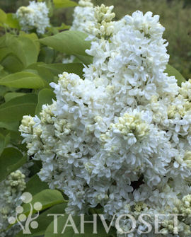 Vihertävän keltaisista nupuista aukeavat puhtaan valkoiset, kerrotut kukat. Kukkaterttu on pitkähkö, kapeankartiomainen ja erittäin tiheä. Tämä jalosyreeni on tullut Suomeen 1900-luvun alussa, ja on edelleen yksi suosituimmista jalosyreeneistä. Yksittäin, ryhmiin.