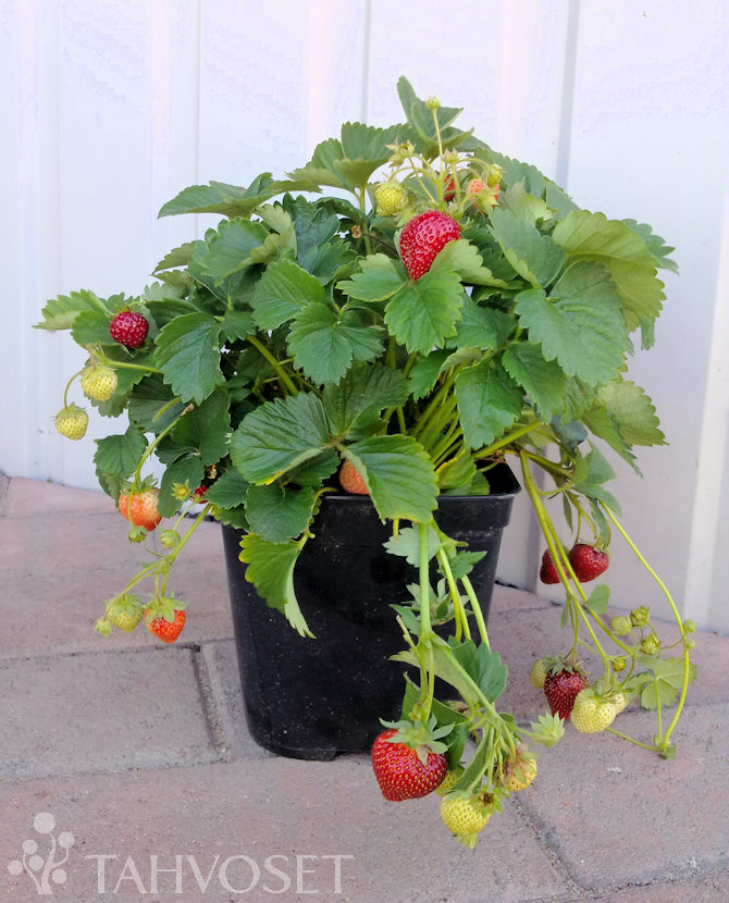 Kolme mansikkalajiketta istutettuna 3 litran astiaan. Lajikkeet (Honeoye, Jonsok ja Polka) on valittu niin, että kukinta-aika ja satokausi jatkuvat pitkään. Taimet varmennettuja käyttötaimia. Lajikkeet: Honeoye: aikainen lajike, Jonsok: aikainen lajike, Polka: myöhäinen lajike