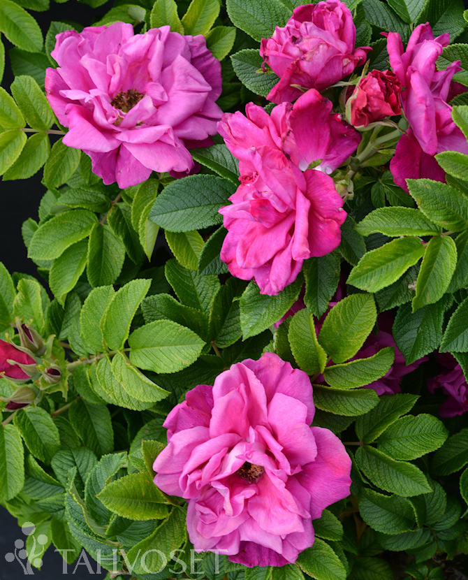 Rugosa-tyyppinen matalakasvuinen pensasruusu. Kukkii hieman siniseen taittavin, helakanpunaisin, puolikerrannaisin kukin syksyyn saakka. Runsaasti oranssinpunaisia kiulukoita. Sietää kuivuutta. Omajuurinen. Ryhmiin, mataliin aidanteisiin.