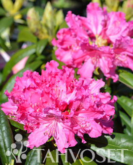 Kukat ovat suuret, voimakkaan ruusunpunaiset ja orkideamaiset. Teriön reunat kihartuvat aaltomaisesti ja sen ylälohkossa erottuu liekkimäinen, tummanpunainen laikutus. Nuppuja, versoja ja lehtien alapintaa peittää vaaleanrusehtava nukka. Nukka-alppiruusu, Smirnowii-Ryhmä. H-095. FinE.